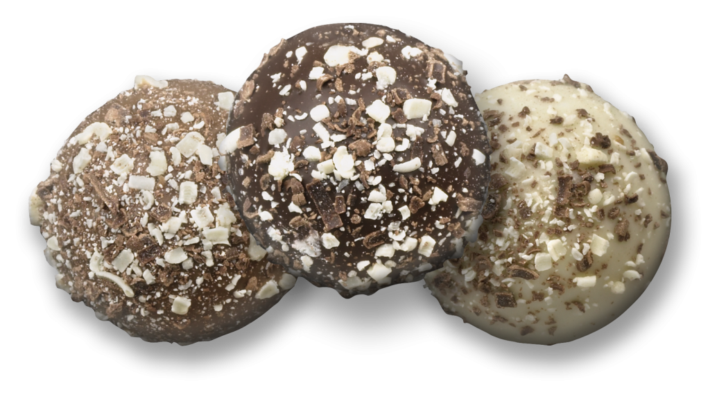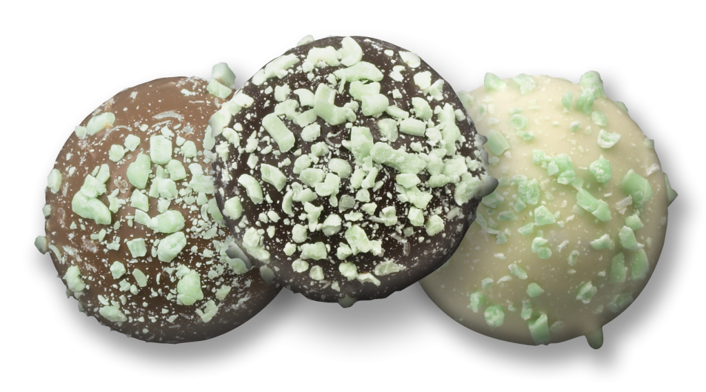 Long a symbol of hospitality, mint is a classic for all occasions. Break open this perfectly tempered dark chocolate shell to reveal a pure burst of refreshing peppermint. Delicate and refined, it’s an elegant way to end dinner or begin the evening. You’ll enjoy a night on the town without ever leaving home.