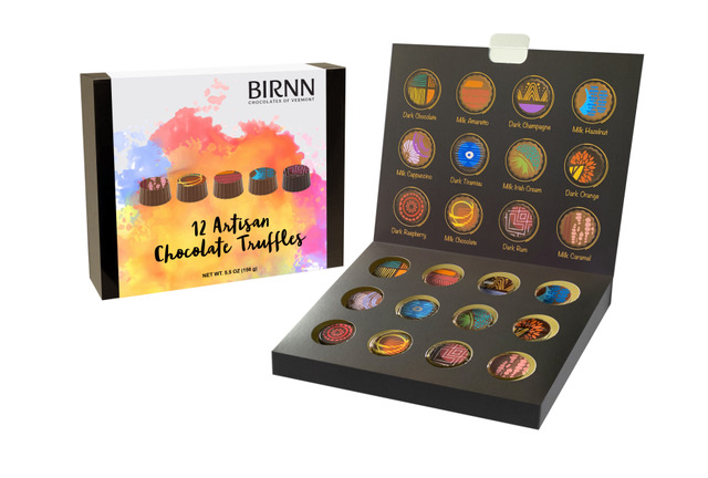 All 12 of our everyday Artisan designs packaged and ready for sale. These gift boxes are sold by the case. One case contains 22 gift boxes, unit price = $12.50 EACH. Gift box can be shipped with our Birnn Branded sleeve or in a blank black box. The flavor ID is part of the box.