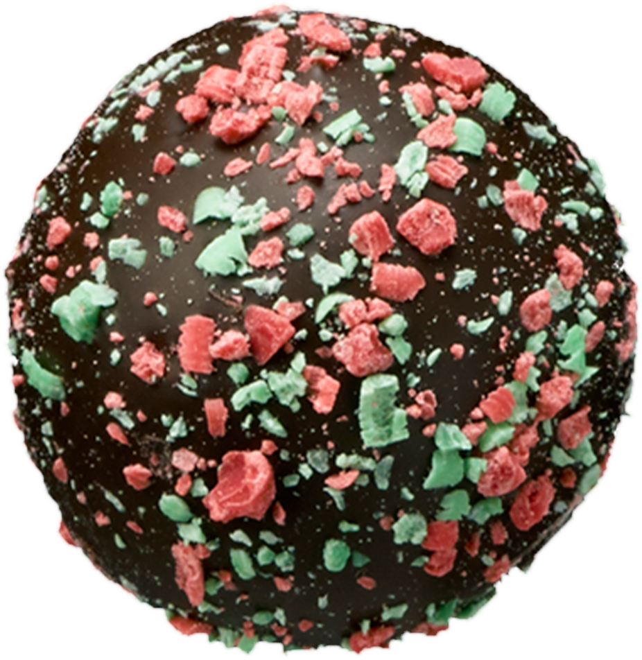 Experience holiday candy at its finest with our Candy Cane Truffle – a perfect twist on a cherished tradition. Adorned with nostalgic red stripes, our peppermint ganache will whisk you away straight to the North Pole. The inner shell and ganache feature dark chocolate, while the exterior is expertly coated in creamy white chocolate – a truly merry combination!