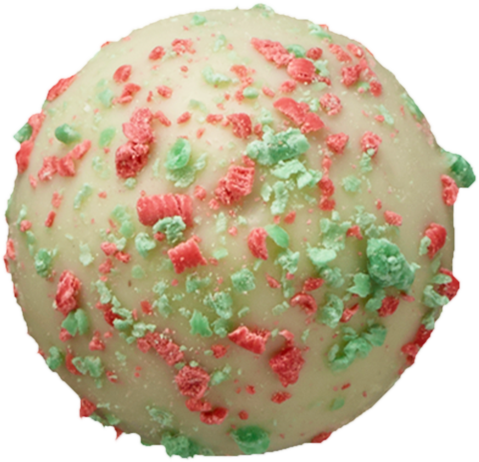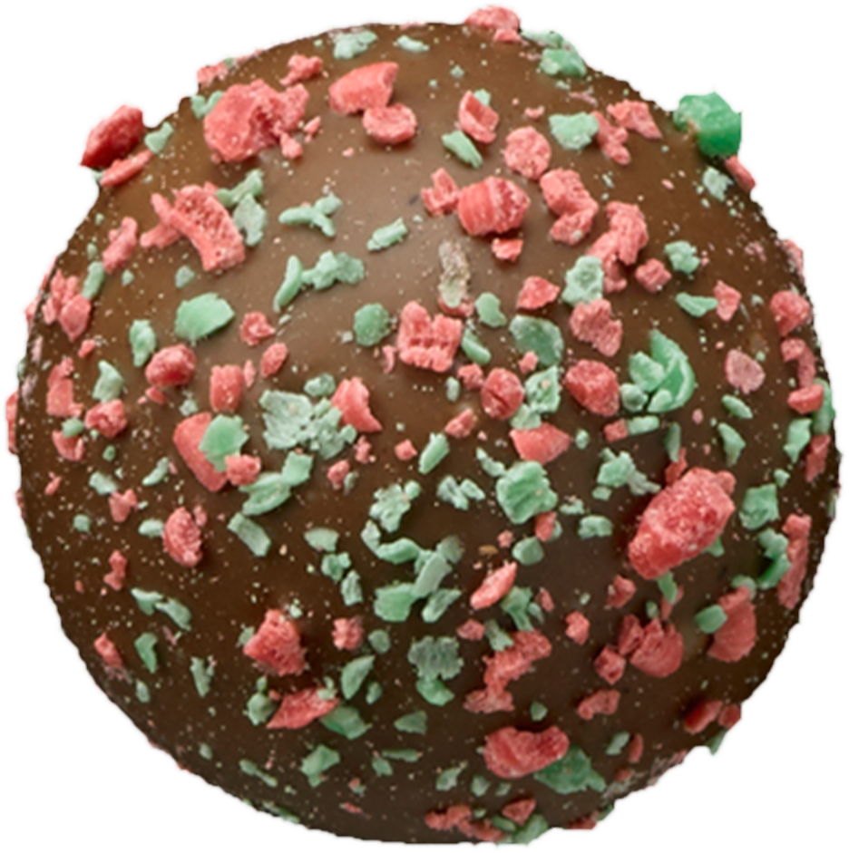 Our first ever dessert size seasonal offering! This delicious holiday tradition is made with a white eggnog ganache and hand decorated with red and green sprinkles. This eggnog truffle will certainly get you in the Holiday Spirit!