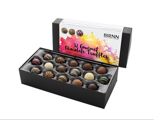 Two trays full of our top selling truffle flavors. An assortment of milk, dark and white chocolate truffles. Sold by the case, 9 boxes per case. Unit Price = $20.50 Each gift box contains 32 bite size truffles. Appoximately 1 LB of truffles.