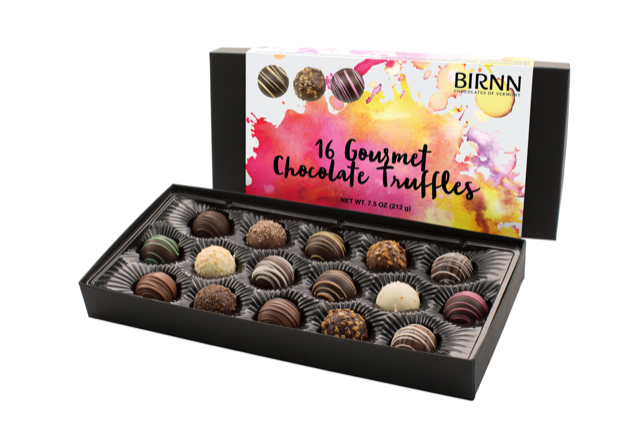 An assortment of our best selling flavors. Packaged and ready to sell. Includes a flavor ID card. Sold by the case, 18 gift boxes per case. Unit Price = $14.00 Each gift box contains 16 bite size truffles. Appoximately 1/2 LB of truffles.
