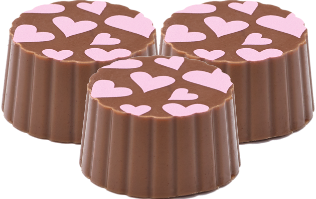 This creamy milk chocolate truffle is filled with a delectable champagne flavored ganache and decorated with a gathering of rose colored hearts. Whether you’re sharing or treating yourself, these heart truffles will help you feel the love!