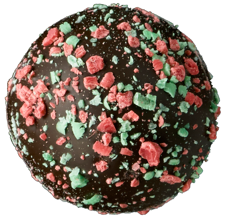 Experience holiday candy at its finest with our Candy Cane Truffle – a perfect twist on a cherished tradition. Adorned with nostalgic red stripes, our peppermint ganache will whisk you away straight to the North Pole. The inner shell and ganache feature dark chocolate, while the exterior is expertly coated in creamy white chocolate – a truly merry combination!
